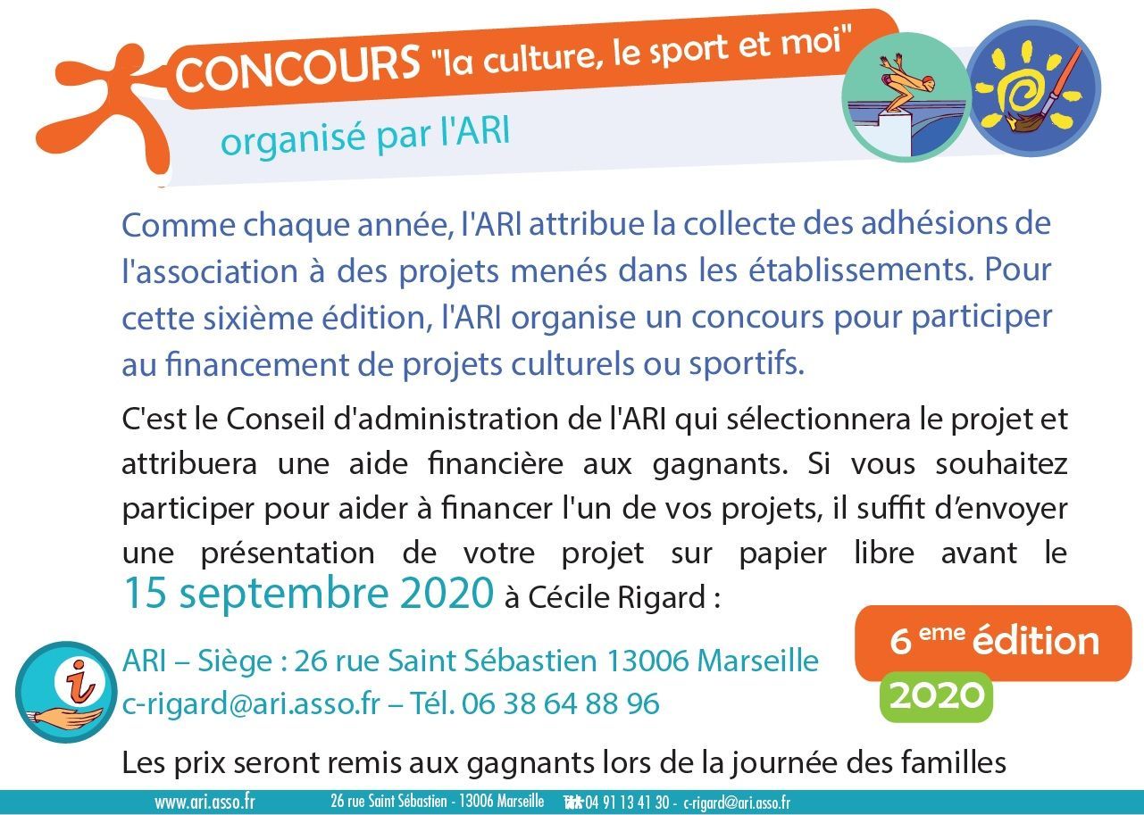 Comme chaque année, l'ARI attribue la collecte des adhésions de l'association à des projets culturels et sportifs menés dans les établissements.