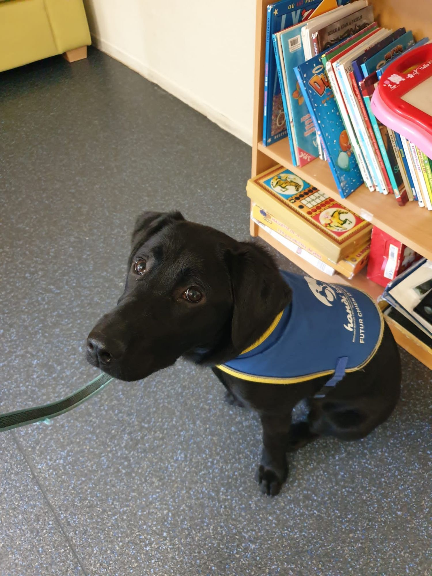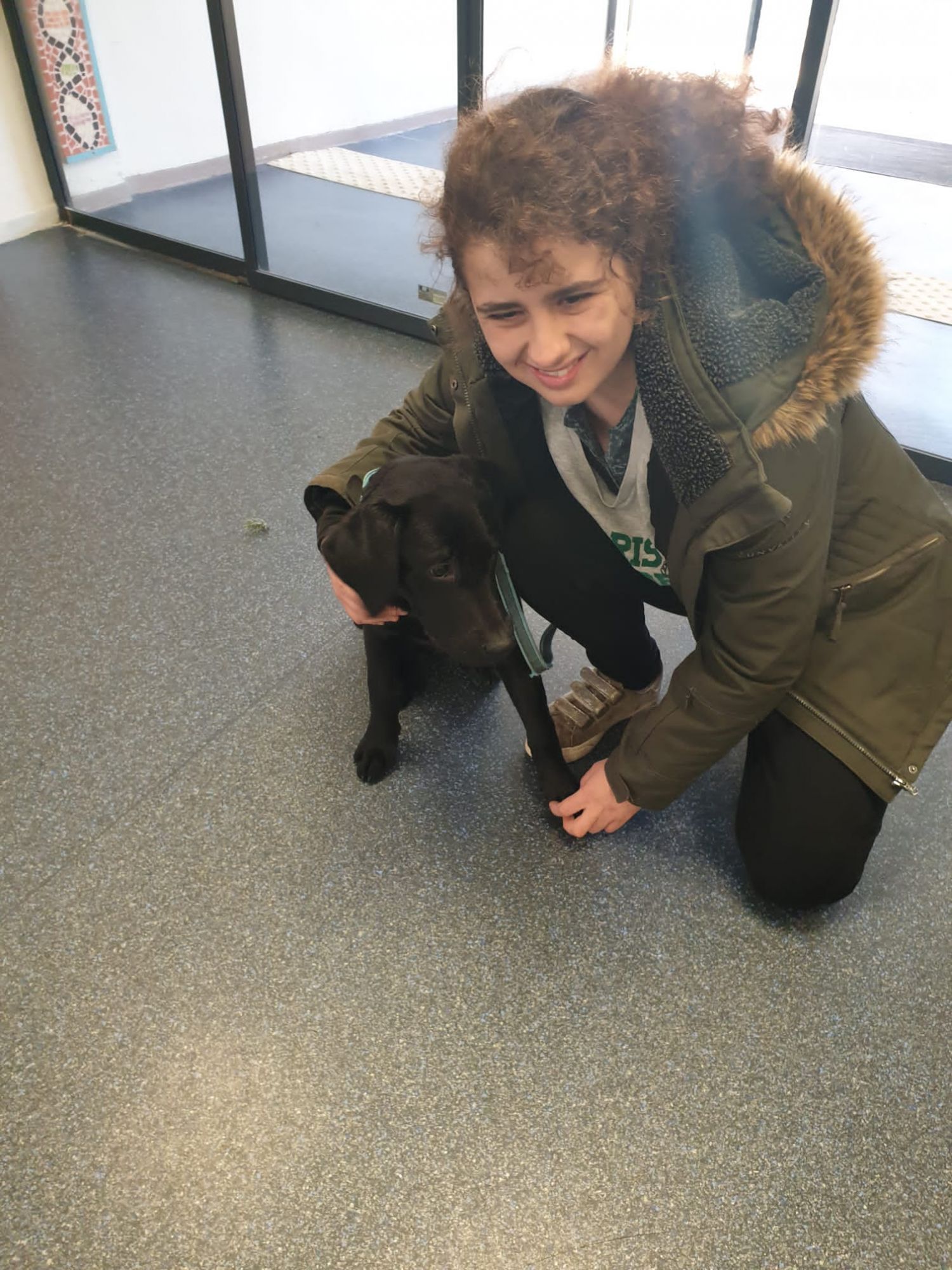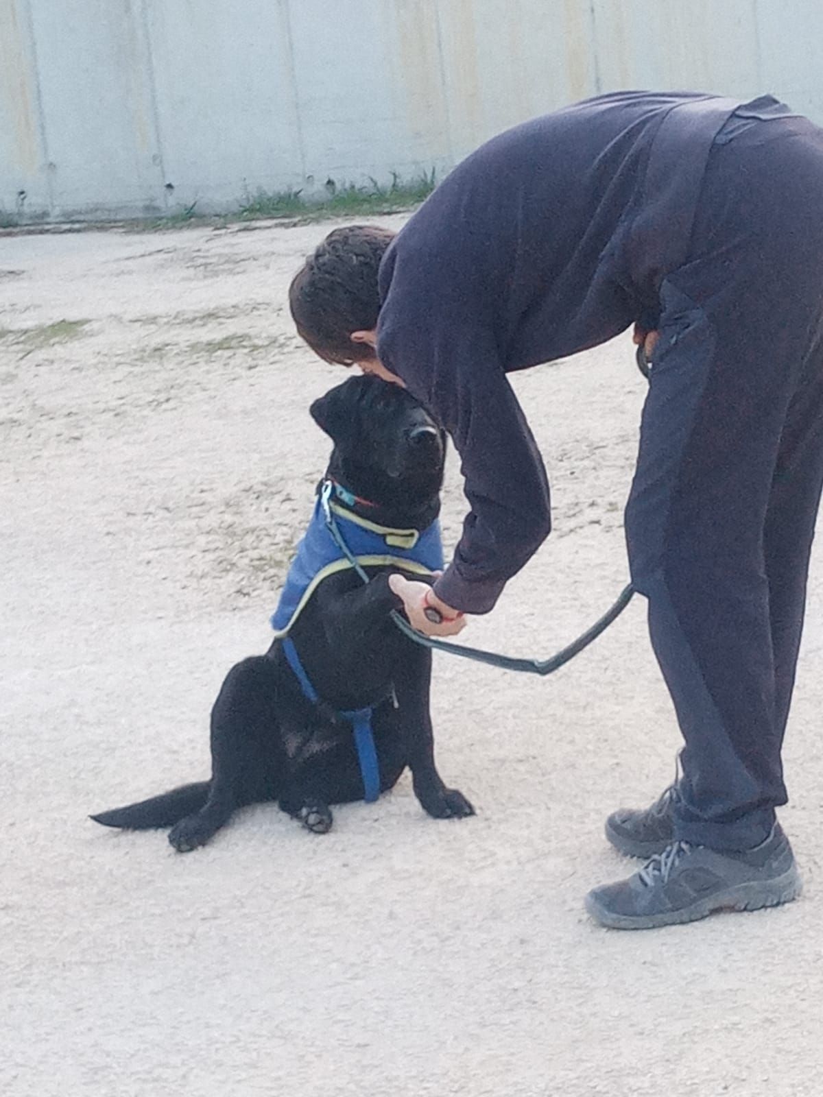 Sophie, professionnelle à l'ARI, est sa référente pendant encore 8 mois, et a pour objectif de la sociabiliser et de l'éduquer pendant toute cette période. Elle doit lui apprendre 20 commandes. (assis, on y va, à ta place, aboyer sur commande de la main, monte, voiture, descends, couché, apporte, donne, genoux, … ). Elle en connait pour l'instant près de 12.