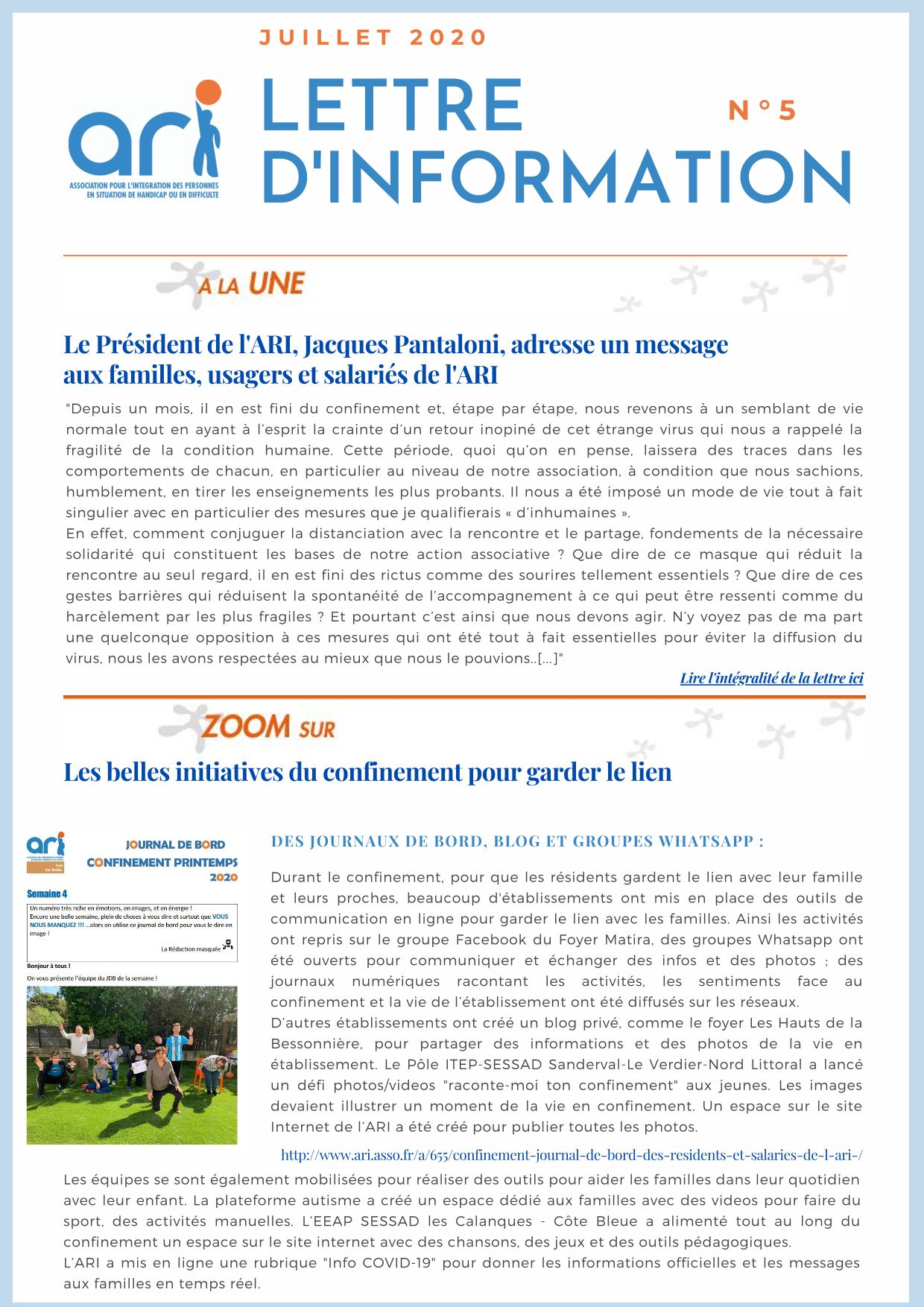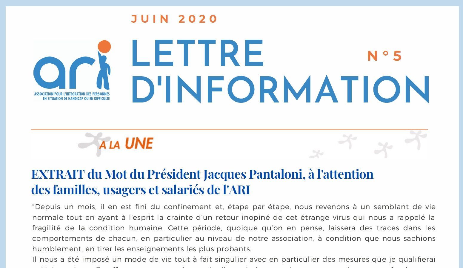 Lettre d'information de l'ARI n°5 Juillet 2020 Dernière modification : 31 août 2020 Lettre d'information de l'ARI - juillet 2020 Lettre d'information JUILLET 2020 - ARI v2 (3.3 Mo)