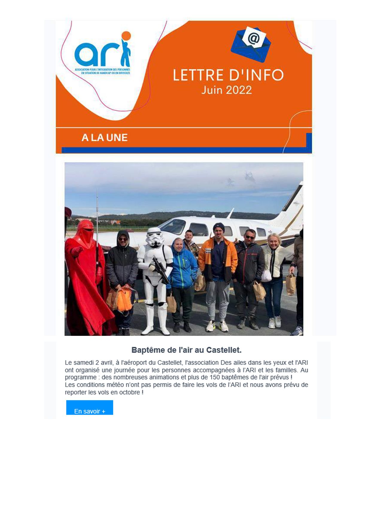 Notre newsletter est envoyée par mail. Si vous souhaitez la recevoir, n'hésitez pas à nous écrire à communication@ari.asso.fr.
