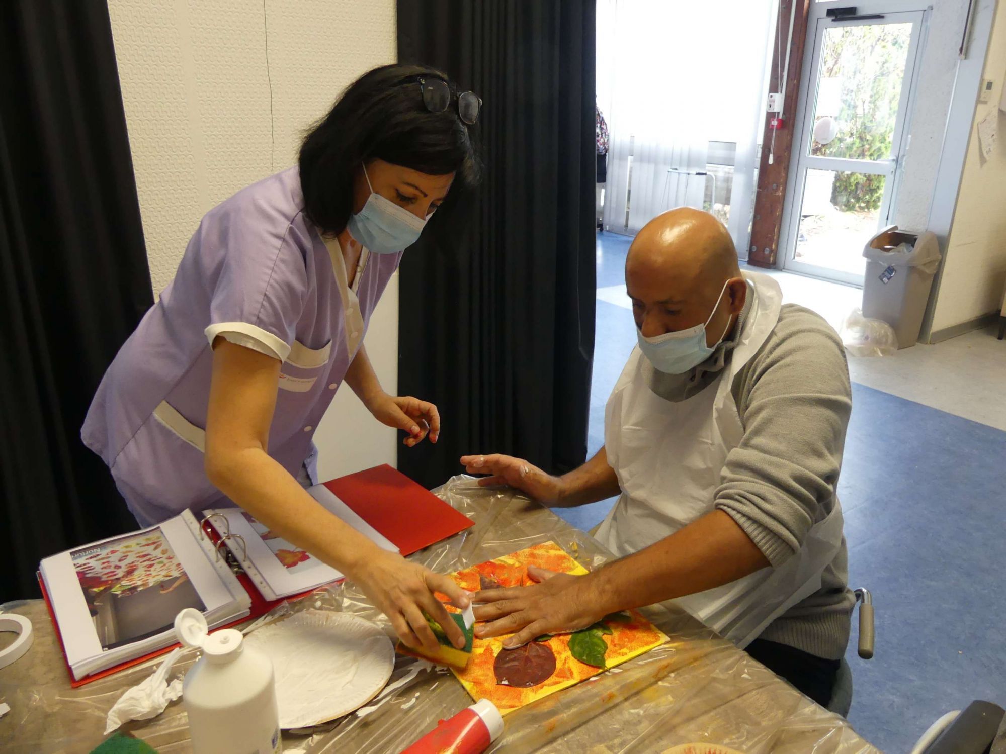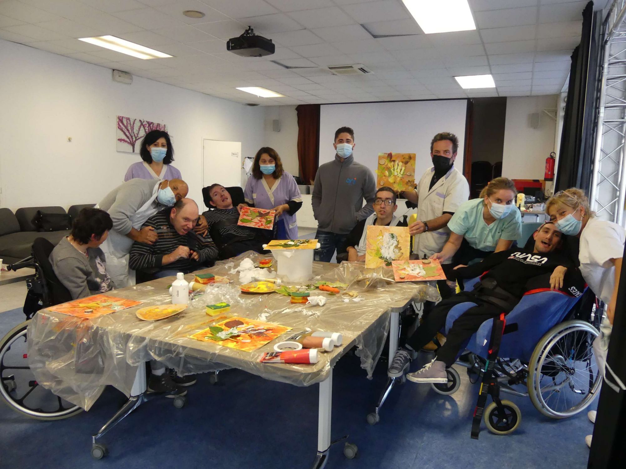 Le peintre Thierry CHAUVELOT et l’association Provence Art Culture ont proposé aux résidents du Fam et de la Mas l’envol une nouvelle séance d’initiation aux arts créatifs sur le thème automnal et hivernal ! Les personnes accompagnées ont pu explorer différentes techniques (peinture, collage, découpage) grâce à l’adaptation du matériel mais aussi profiter de modèles et de supports de communication alternative adaptée (classeur arts créatifs CAA permettant de communiquer autrement ou mieux qu’avec les modes habituels et naturels) comme support de créativité pour favoriser le choix de chacun.