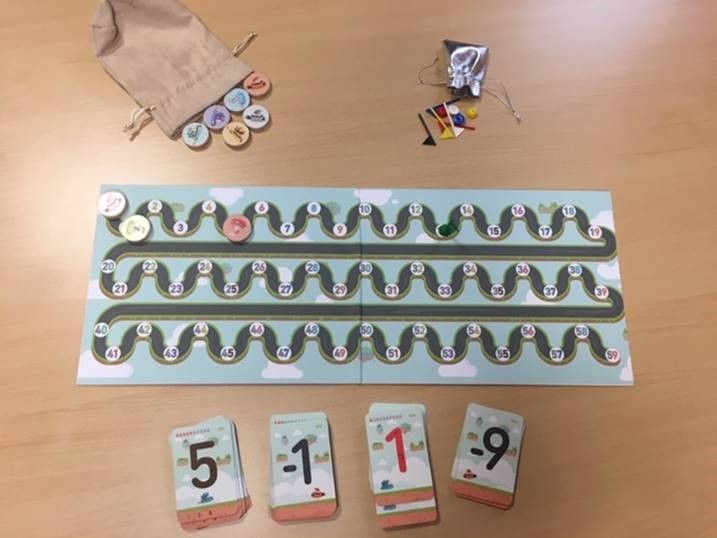 Objectif : soutenir les notions mathématiques (additions / soustraction) avec de la manipulation ludique. Ce jeu peut s’utiliser en groupe ou en individuel et fera donc écho a d’autres notions suivant la méthode choisie (tour de rôle, stratégie commune…)