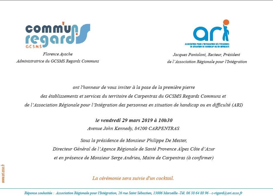 Pose de la premiere pierre à Carpentras Vendredi 29 mars 2019 Dernière modification : 11 mai 2020 Le Chantier se trouve sur la rue Denis Diderot (La rue Denis Diderot se trouve en face de l'usine SINIAT, sur avenue John Kennedy)